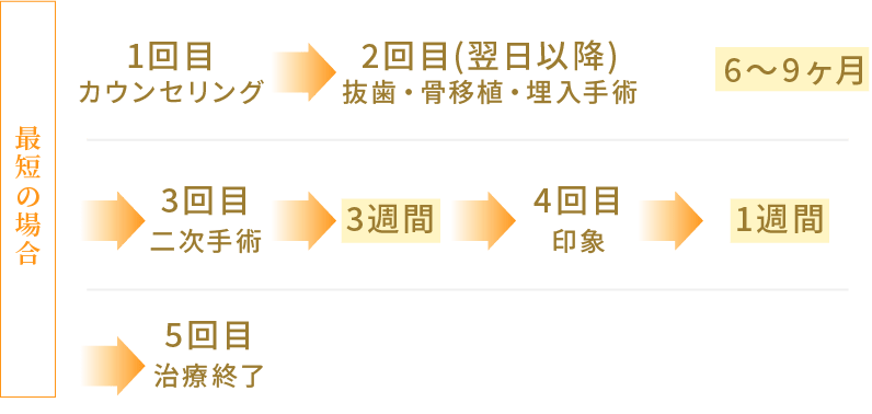 1回の治療時間を長く確保することにより、通院回数を少なくすることができます。「治療をする時間がない」「とにかく急いで治療したい」といった方のスケジュールに合わせた治療をご提供いたします。
